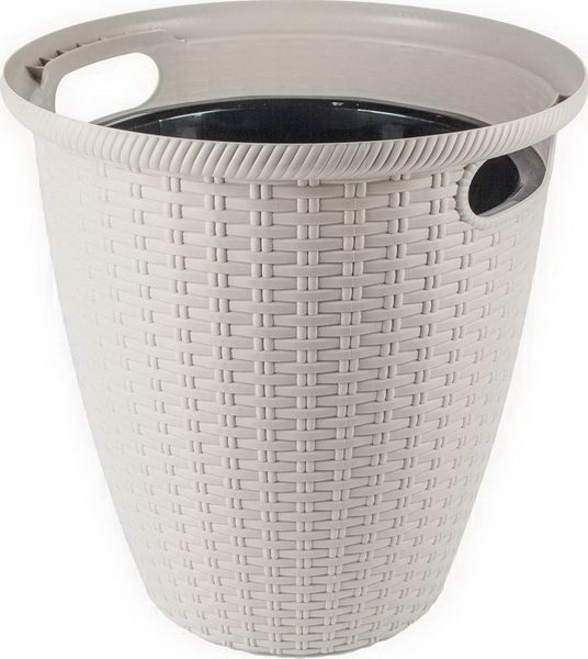 Коллекция Rattan-интерьерное решение жилых помещений, украшения террас, веранд и дач. Самое популярное плетение воплощено в кашпо и мебели различных форм и размеров. Растение высаживается в технический горшок –вставку с дренажными отверстиями, затем помещается в декоративное кашпо, благодаря чему отсутствует необходимость в использовании поддона. Двойная конструкция горшка помогает сохранить корни при пересадке, а также защитит от перегрева, даже если растение находится под прямыми солнечными лучами. Горшок для цветов имеет эргономичные ручки для легкой транспортировки растения. Прочный пластиковый материал сохраняет растение от повреждений, подходит для использоваться в помещении для комнатных растений и на улице до -5С. Единая коллекция с большим выбором литражей помогает создать гармоничный интерьер.