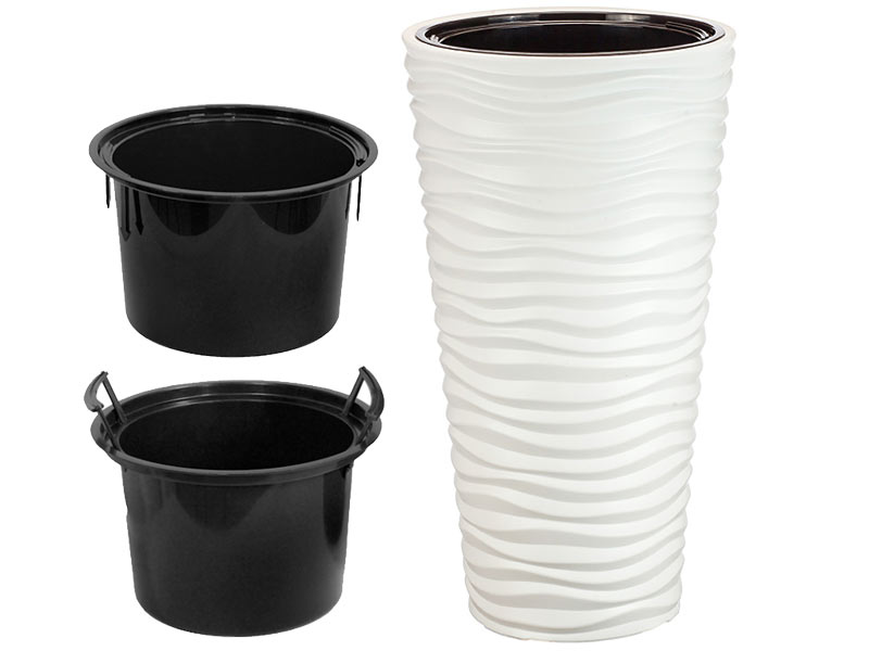 Кашпо "Оазис" состоит из цветного кашпо и внутреннего горшка. Растение высаживается во внутренний горшок и вставляется в кашпо. Кашпо изготовлено из прочного пластика и декорировано волнообразным объемным декором. Кашпо подойдет для высоких растений, а современный внешний вид украсит интерьер помещения. Объем кашпо 43 литра. Объем вставки 10 л. Размеры изделия (ДхШхВ): 390х396х780 мм. Цвет белый, серый
