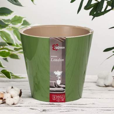 Горшок для цветов London D=160мм (1,6л) со вставкой, Олива, пластик ING6204ОЛ InGreen