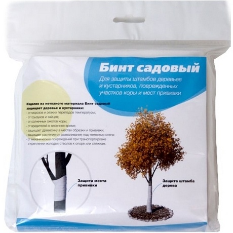 Бинт садовый изготовлен из нетканого материала, который пропускает воздух, не задерживает воду и отражает прямые солнечные лучи. Это позволяет надёжно защитить стволы молодых деревьев от морозов и солнечных ожогов.