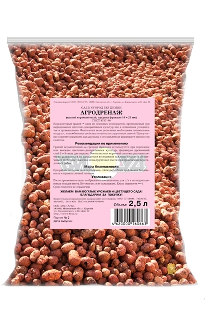 Гравий керамзитовый, фр. 5-10 используется при пересадке или высадке цветочно-декоративных культур, формируя дренажный слой 2-5 см на дне горшка. Это позволяет корневой системе растения активно развиваться, не находиться во влажной заиленной среде и обеспечивает свободное удаление кома грунтовой смеси при проведении пересадочных работ.