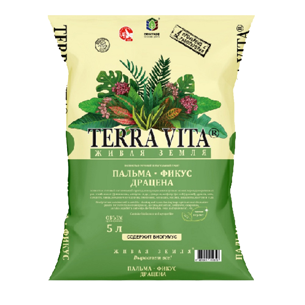 Грунт TERRA VITA Живая Земля Пальма-Фикус-Драцена 5л