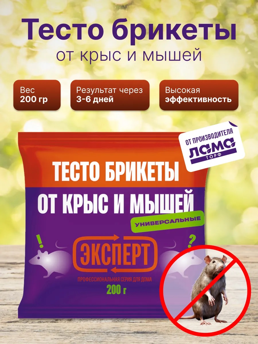 Эксперт тесто-брикет от крыс и мышей 200г 24965