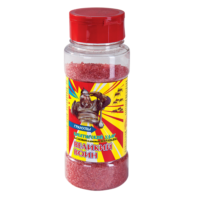 Для уничтожения садовых муравьев в отмостках домов, коттеджей, на садовых дорожках рассыпают гранулы в щели между плитками и в других местах скопления и на путях их передвижения в сухую безветренную погоду. Удобная банка-дозатор