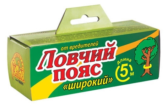 Предназначендля защиты деревьев от вредных ползающих насекомых: гусениц, муравьев и других. Пояс представляет собой клейкую ленту длиной 5 метров. Липкий слой не дает насекомым пробираться на дерево, при этом не вредит полезным насекомым. Подходит для плодовых культур и декоративных деревьев. Пояса хватит для оборачивания нескольких деревьев, в зависимости от их толщины. Ловчий пояс является экологически безопасным, не содержит ядов. Он устойчив к влажности, не сохнет и не теряет своих свойств длительное время. Ширина 130 мм