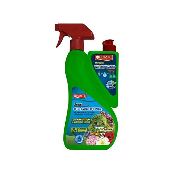 Уничтожает различные виды насекомых-вредителей: от тли, белокрылки, паутинного клеща, трипсов, гусениц и других. Защищает от 50 видов насекомых. - УДОБНО использовать - спрей для небольших растений, концентрат для больших площадей- 3 в 1 - мощный барьер (до 45 дней защита), мгновенное уничтожение, отпугивающие свойства- Эффективен при любой погоде- Не смывается дождем Срок годности: 3 года