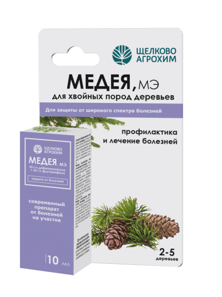 Фунгицид «Медея, МЭ» предназначен для профилактики и лечения хвойных пород деревьев от шютте и других болезней. Препарат быстро проникает в растение и останавливает заболевание на любой стадии его развития.