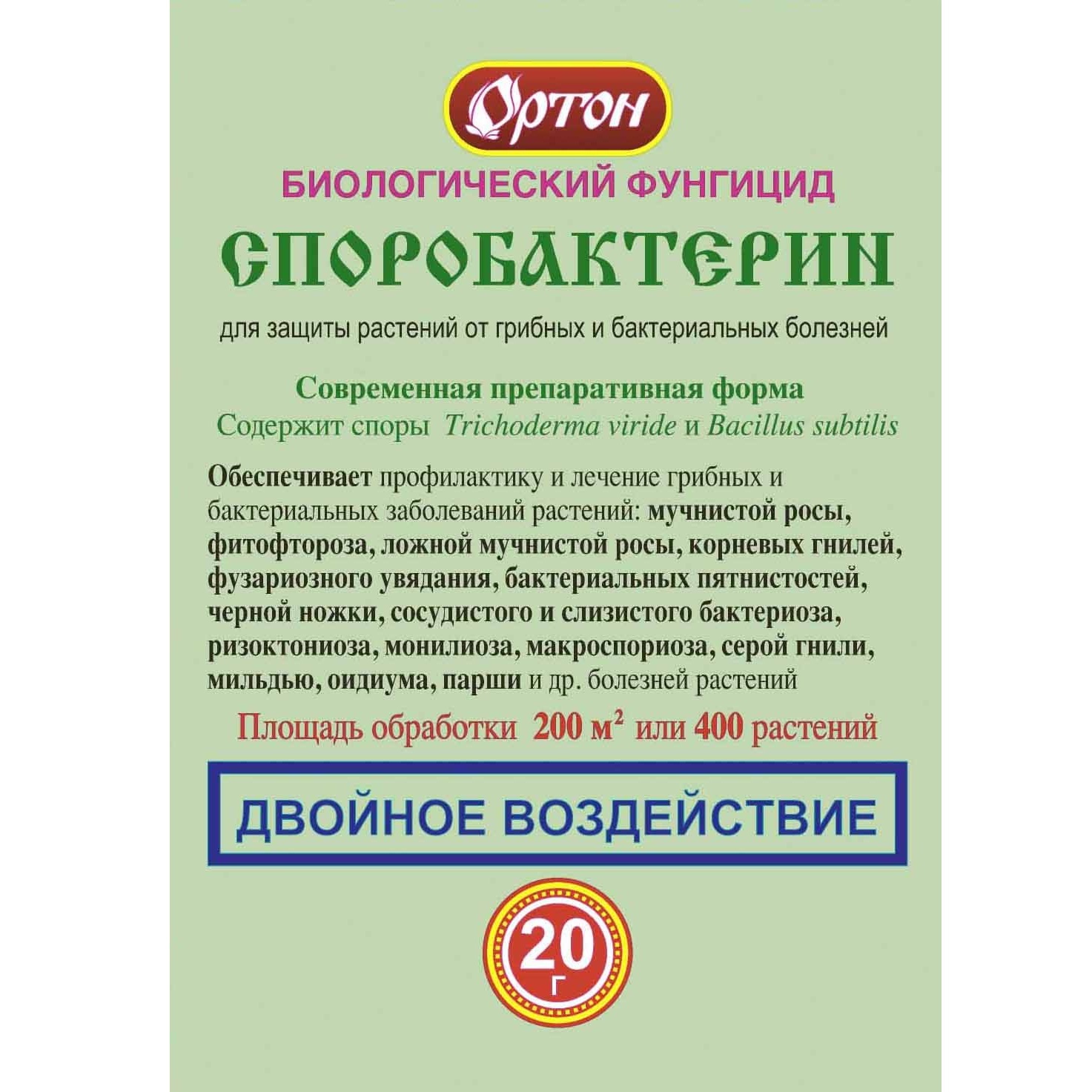 Препарат для защиты овощных, плодовых, цветочных культур и газонных трав от грибных и бактериальных болезней.Действие: обеспечивает профилактику и лечение грибных и бактериальных заболеваний растений: мучнистой росы, фитофтороза, ложной мучнистой росы, корневых гнилей, фузариозного увядания, бактериальных пятнистостей, черной ножки, сосудистого и слизистого бактериоза, ризоктониоза, монилиоза, макроспориоза, серой гнили, мильдью, оидиума, парши и др. болезней растений.