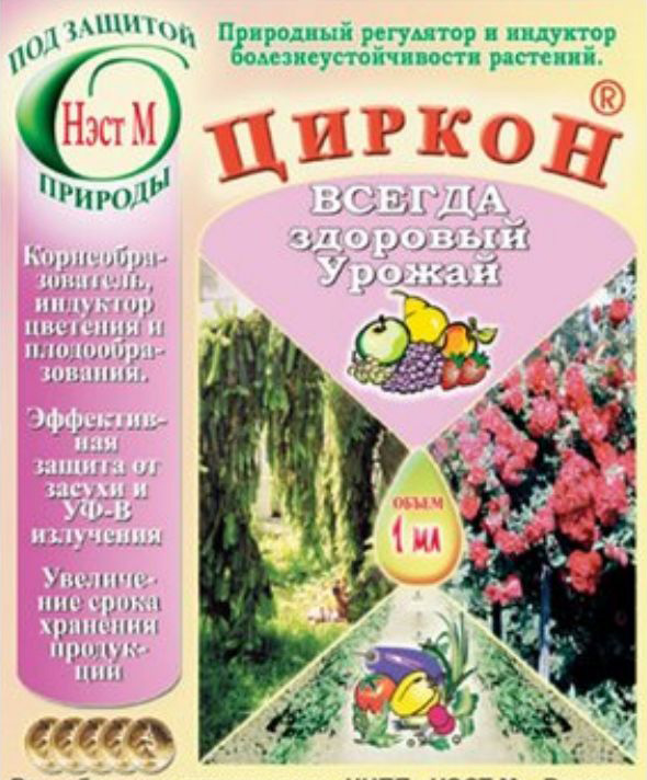 Главным преимуществом препарата перед конкурентами является натуральность его происхождения. Средство действует на растения на клеточном уровне, поддерживая их рост, развитие и здоровье. Препарат совершенно не вызывает стресса у культур, помогает получить крепкую рассаду, укоренить черенки, адаптировать саженцы к новым условиям и повысить урожайность. Кроме этого, положительные свойства, согласно инструкции, "Циркон" демонстрирует и на комнатных цветах, и на хвойных растениях. Препарат, благодаря своему натуральному составу, отлично справляется с выведением из растений тяжелых металлов, пестицидов и радионуклидов. Гидроксикоричные кислоты в растворе являются противовирусным, противогрибковым и антибактериальным средством с антиоксидантным и антитоксичным эффектом.