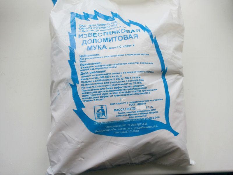 Способствует повышению урожайности культур, устойчивости растений к различным заболеваниям. Известняковую (доломитовую) муку вносят осенью или весной, под перекопку почвы. Рекомендуемая периодичность внесения 1 раз в 5 лет.