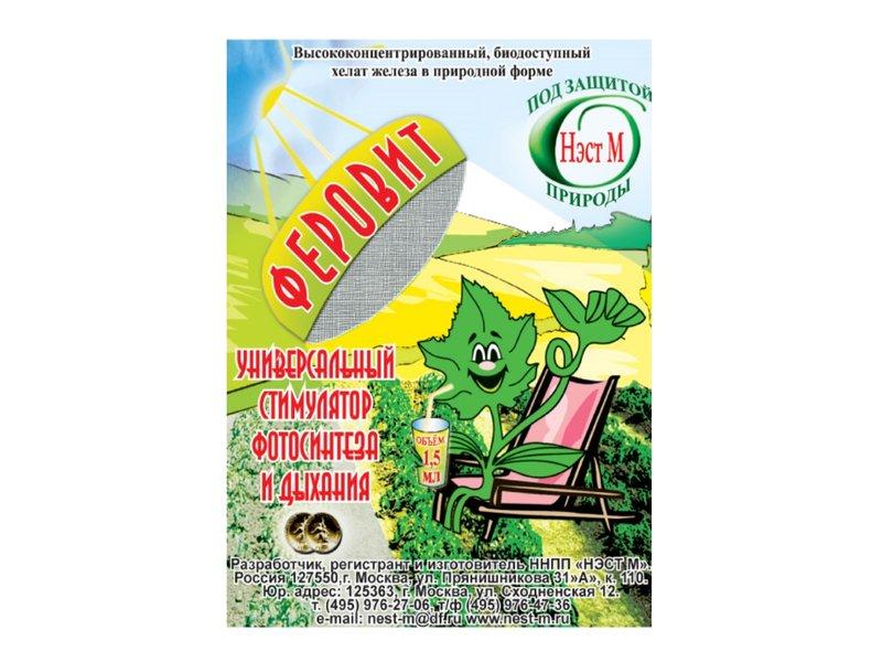 ФЕРОВИТ - предназначен для корневых и некорневых подкормок различных культур открытого и защищённого грунта, включая комнатные и лекарственные растения, а также хвойные и лиственные деревья и кустарники. Применяется, как профилактическое средство и защита от хлороза при дефиците биодоступного железа. Необходим во всех случаях разрушения хлорофилла и снижения фотосинтетической активности (нестабильные условия произрастания, недостаточная освещенность, болезни, повреждение вредителями). Ускоряет рост и развитие растений, предотвращает опадение цветков. Вызывает раннее и дружное цветение. Способствует лучшему завязыванию плодов, снижению количества незрелых. Увеличивает урожайность. Защищает растения от хлороза, снижает поражение бурой ржавчиной, мучнистой росой, паутинным клещом и др.