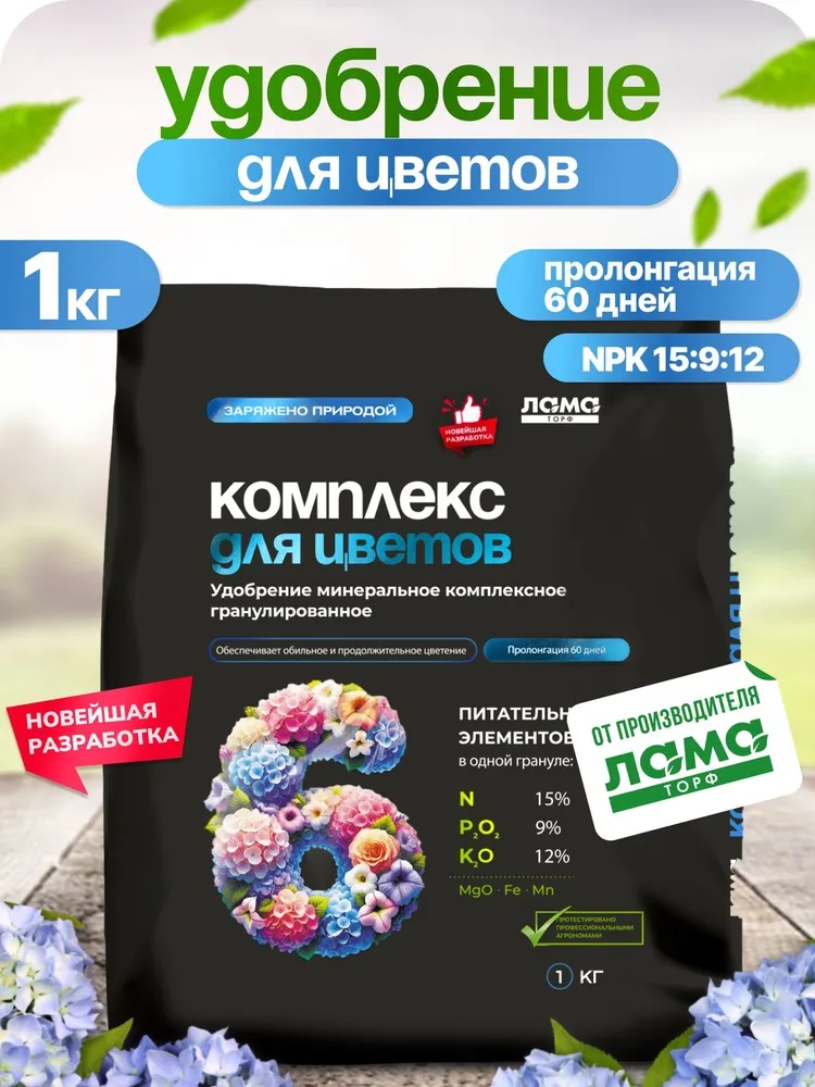 Удобрение Комплекс для цветов, минеральное гранулированное,  Лама Торф 1 кг