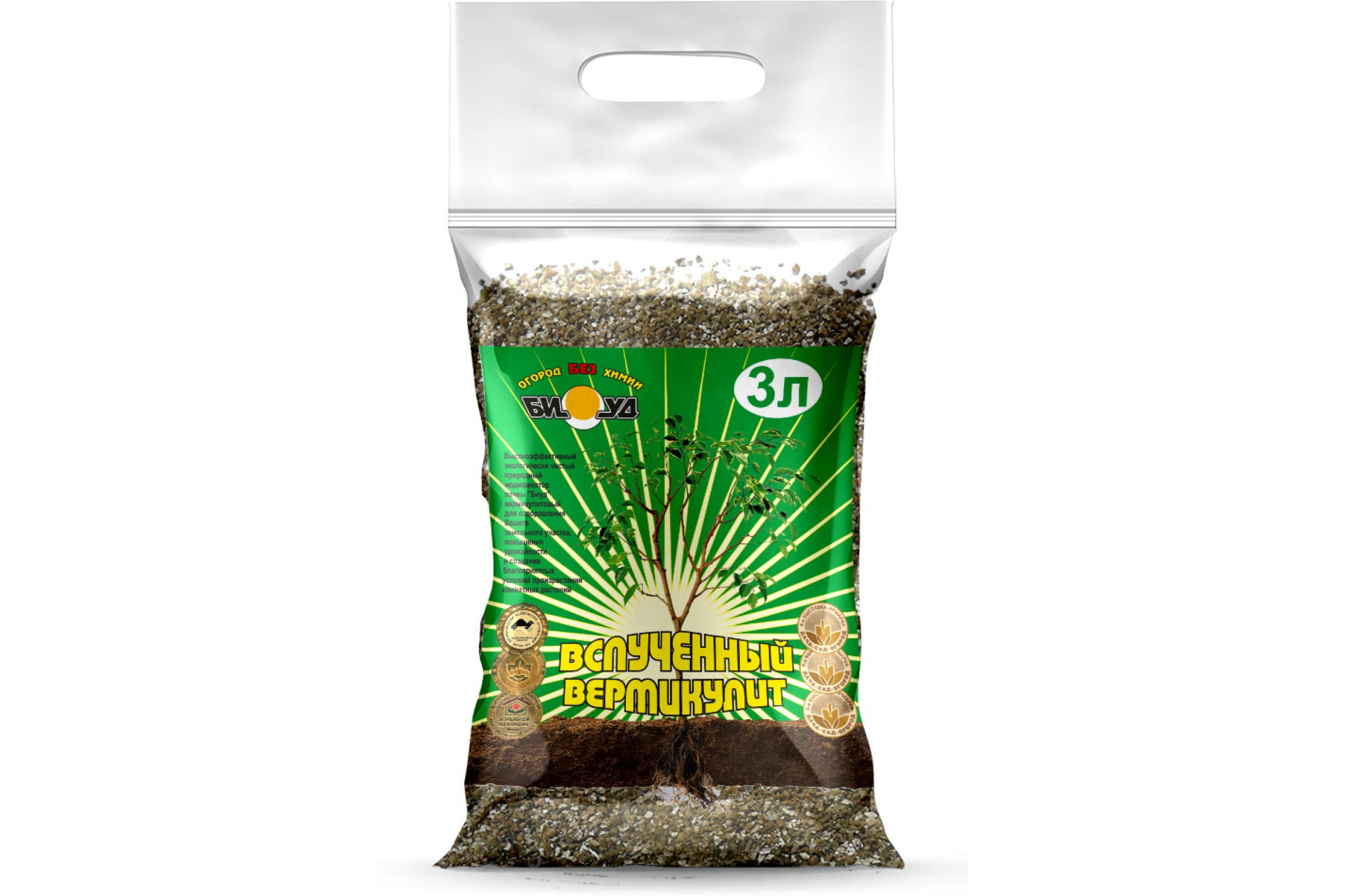 Природный минерал для разрыхления и аэрации почвы и удержания влаги. Обладает дезинфицирующими свойствами, действуя как адсорбент, а также обогащает почву минеральными веществами(магний, калий, марганец, железо). Может использоваться как добавка к различным почвосмесям или как самостоятельный субстрат для укоренения черенков и гидропонных культур. За счет нейтрального показателя кислотности (pH) вермикулит несколько снижает кислотность земельной смеси и затормаживает процесс ее засоления.