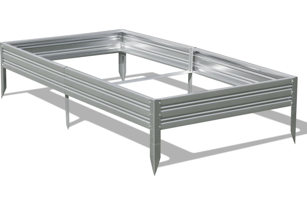 В комплект входит 4 борта, колышки, стяжки, саморезы и инструкция по сборке. Ширина грядки 0,7 метра, базовая длина – 2 метра. Удлинитель к грядке увеличивает длину на 1 или 2 метра. Высота грядки 0,17м. Металлические колышки вкапываются в землю на 0,25 м.