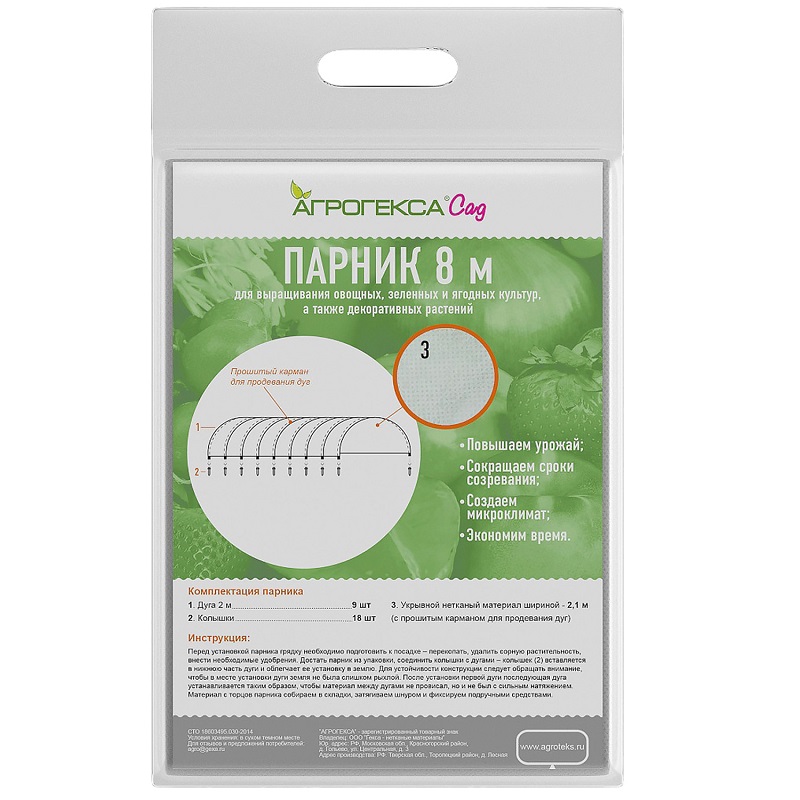 Парник Агрогекса ® Сад тоннельного типа дуга 2м 8м