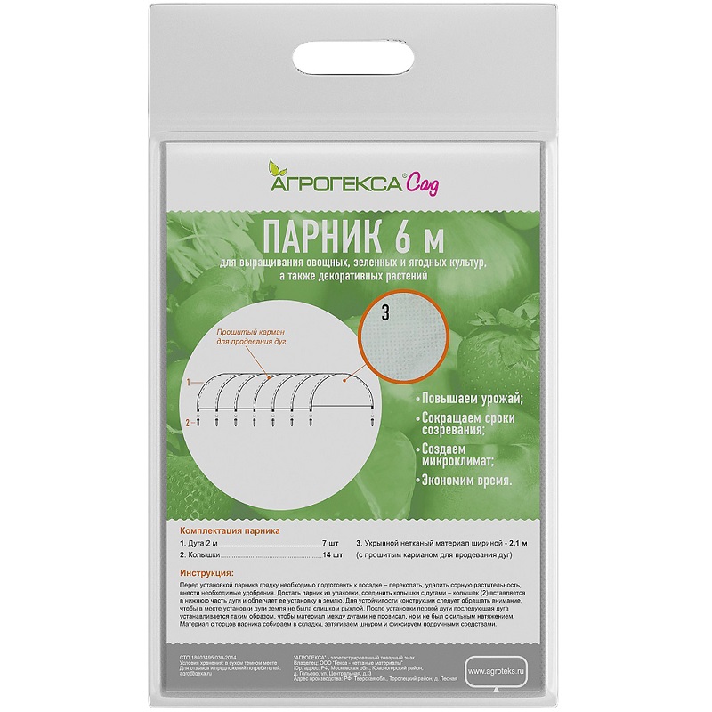 Парник Агрогекса ® Сад тоннельного типа дуга 3м 6м