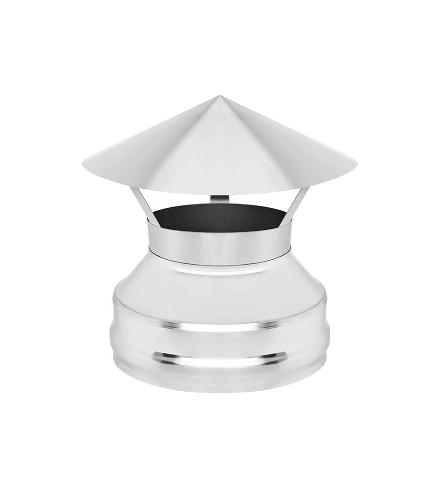 Оголовок применяется для защиты двухконтурного дымохода от попадания атмосферных осадков.