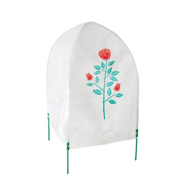 Колпак для зимнего укрытия на металлических дугах в ПВХ Комплект-Агро H-100 см, D-50 см KA5429 предназначен для роз. Защитит теплолюбивые растения в бесснежную зиму. Состоит из металлического каркаса с ПВХ покрытием и чехла из укрывного материала спанбонда.