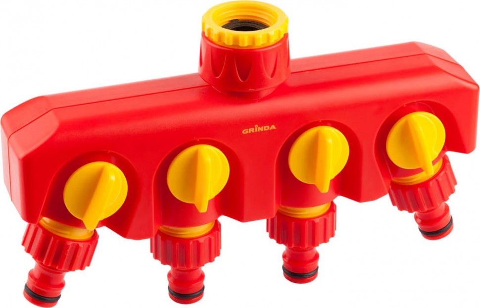 Применяется для одновременного подключения четырех водозаборных линий к водопроводной трубе или крану с внешней резьбой 1/2" или 3/4"