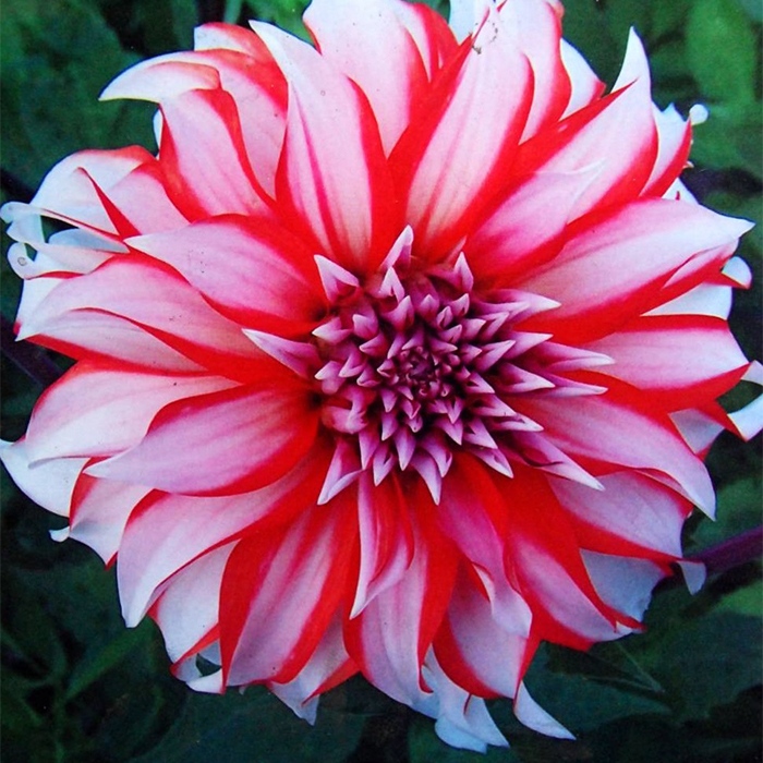 Георгина Долли Эйч – это очаровательное многолетнее растение с обильным продолжительным цветением. В лучах заката эти огромные цветы создают неповторимый эффект внутреннего свечения. Белые с красной каймой лепестки настолько нежны, что кажутся созданными из фарфора умелым скульптором. В ландшафтном дизайне любой сложности или просто в сельском дворе эта георгина притягивает восхищенные взгляды. Описание и характеристики георгины Долли Эйч Куст высотой 100-120 см с множеством боковых веток, на которых с июля по сентябрь непрерывно образуются бутоны. Корневище развитое, для зимнего хранения выкапывают, помещают в сухое прохладное помещение. Размер цветка от 15 до 20 см. Хорошо растет на солнечном месте. Для формирования густой кроны и большого количества цветов нуждается в питательной почве, регулярных подкормках. Для предотвращения повреждений ветром нуждается в надежной опоре.