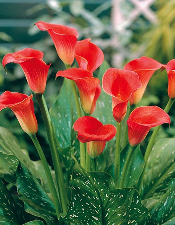 Калла Ред Сокс дарит ощущение жаркого лета. так как окрашен в сочный, яркий красный цвет, напоминающий спелое яблоко. Крупные листья темно-зеленого цвета украшены белым мелким крапом и имеют волнистые края. Высота растения достигает 50 см. Сорт идеально подходит для горшечного выращивания и станет украшением дома, балкона, лоджии, терассы, веранды или патио-дворика.