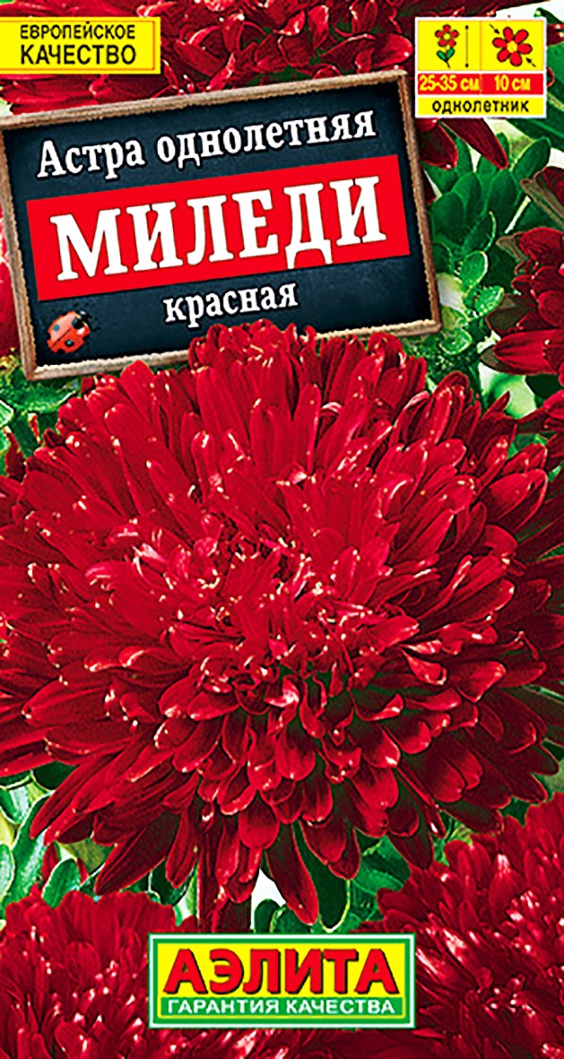 Cерия привлекательных крупноцветковых низкорослых астр. Кусты компактные, высотой 25-35 см. Соцветия густомахровые, Ø 9-10 см. Достоинствами серии Миледи являются высокая устой-чивость к болезням и неблагоприятным погодным условиям, а также раннее (на 2 недели раньше обычных сортов), длительное цветение. Для бордюров, балконных ящиков, горшков.