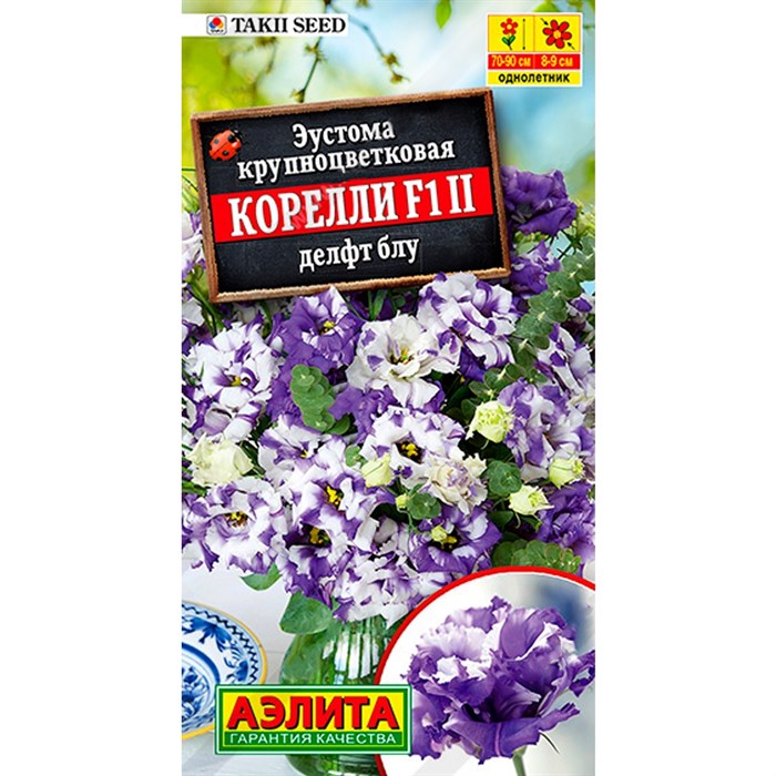 Роскошная и элегантная серия раннецветущих эустом от японской компании Takii Seed. Гибриды Corelli F1 отличаются от других превосходными крупными, ? 8-9 см, цветами изысканной утонченной формы. Растения крепкие с отличным верхним ветвлением, высотой 70-90 см. Прекрасно подходят для создания букетов и цветочных композиций. После срезки цветы сохраняют длительное время прекрасный внешний вид.