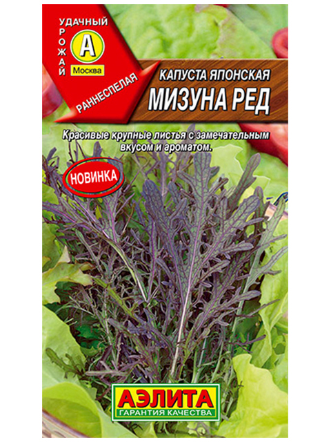 Холодостойкий сорт листовой капусты – прорастает даже при небольшой минусовой температуре (-2...-3 °С). Очень ранний, зелень готова к употреблению уже через 2-3 недели после посева. Сорт подходит для выращивания в открытом грунте, с успехом можно выращивать в домашних условиях. Формирует пышную розетку, высотой 25-30 см. Листья эффектные, темно-зеленые с антоцианом. Богаты витаминами и микроэлементами. Очень сочные и хрустящие, обладают нежным, пикантным вкусом, с легкой горчинкой. Свежие листья отлично разнообразят вкус салатов, бутербродов, мясных и рыбных блюд. Благодаря необычному внешнему виду, капуста японская часто используется в ландшафтном дизайне. Сорт отличается высокой урожайностью – 3,5-4,0 кг/м2.