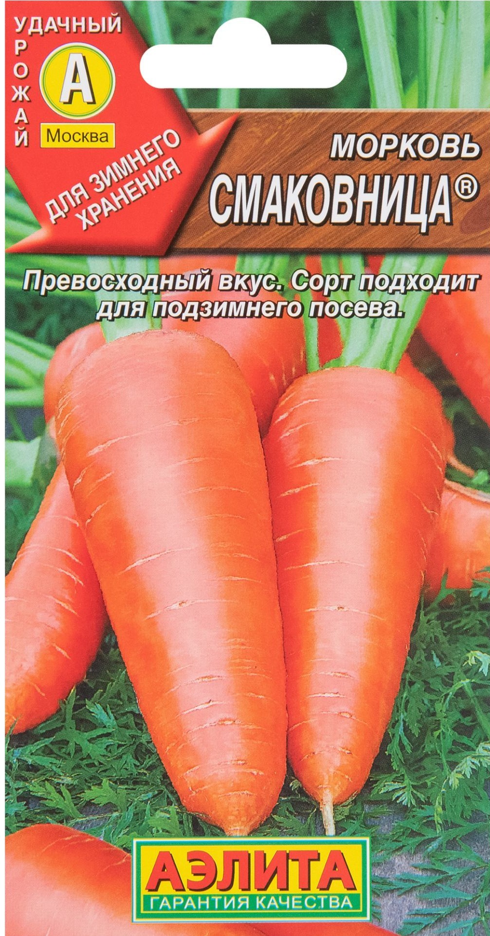Один из самых вкусных сортов в линейке сортотипа Шантенэ. Выделяется также приличной урожайностью (до 10 кг/м 2 ) и хорошей адаптацией к различным условиям выращивания. Сорт среднеранний. Подходит для летнего потребления (на пучок) и для хранения до весны. Пучковая спелость наступает через 50-60 дней от всходов; на хранение убирают через 97-110 дней. Корнеплоды короткие и ровные, отличного товарного вида, массой 100-180 г. Превосходный вкус обусловлен высоким уровнем сахаров (9-10%) и каротина. Использование универсальное.