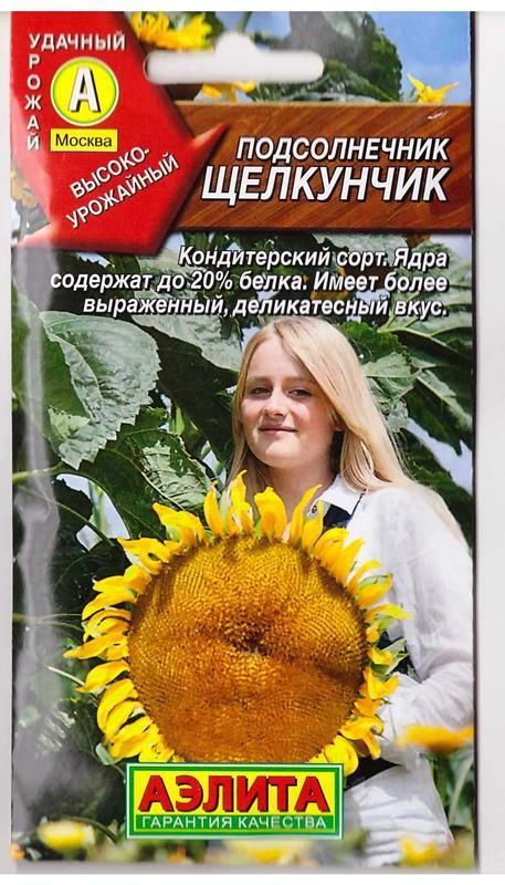 Высокопродуктивный сорт из сегмента кондитерских. Среднеранний, формирует урожай за 85-90 дней от всходов. Растения высокие – 190-210 см, с большими корзинками. Цветение и созревание дружное. Семена крупные (масса 1000 семянок превышает 120 г), хорошо выполненные. Ядра содержат до 20% белка – значительно выше, чем у масличных сортов. Традиционное российское лакомство имеет более выраженный, деликатесный вкус. Растения обладают высокими медоносными и декоративными качествами.