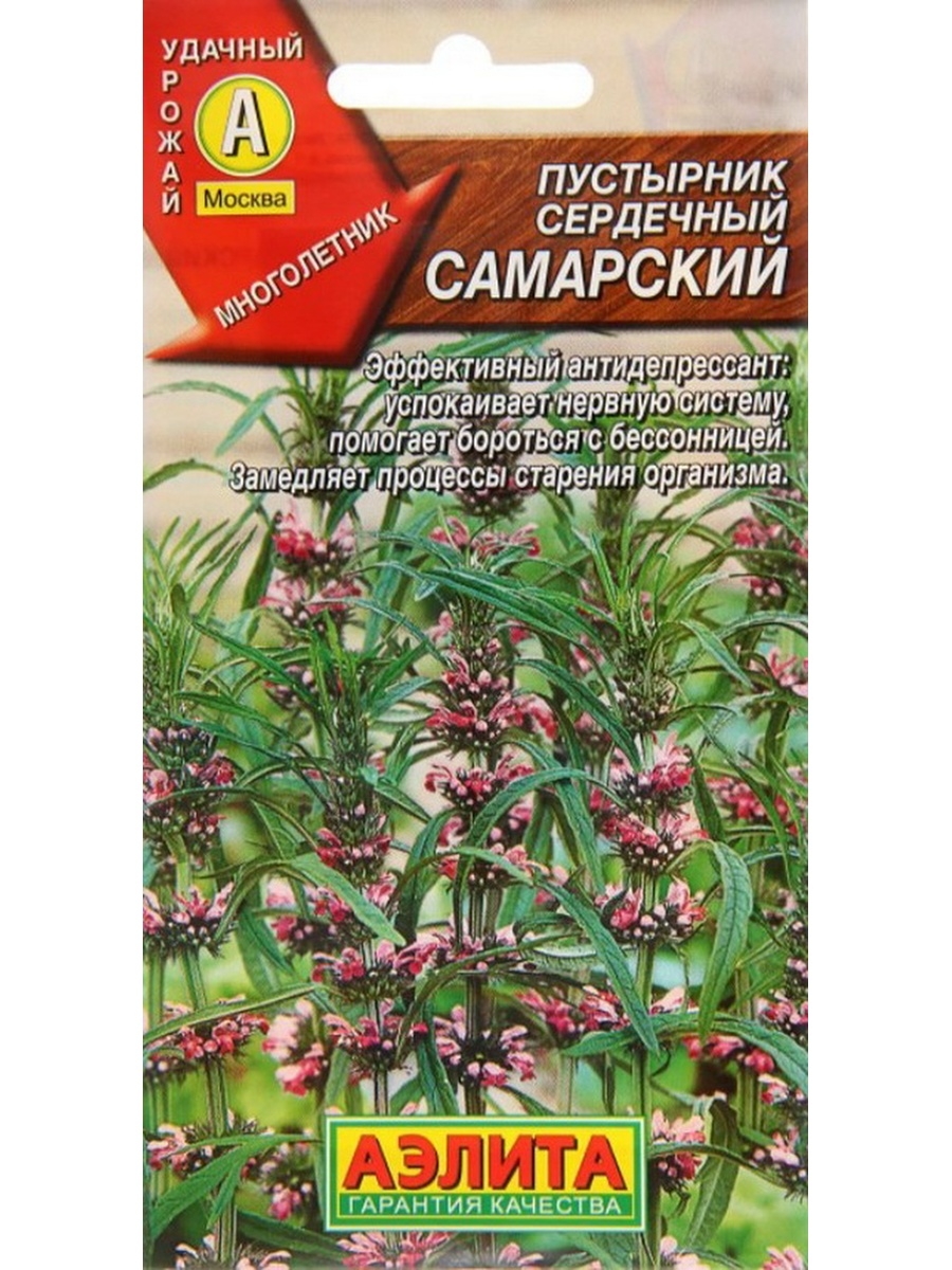 Пустырник – многолетнее, травянистое, лекарственное растение. Отличный медонос. Настой обладает успокаивающим действием, нормализует артериальное давление, укрепляет сердечную деятельность. Ценное сырье заготавливают на стадии бутонизации и начала цветения, срезая цветоносные верхушки длиной 30-40 см, и сушат. Чай из пустырника: 2 ч.л. травы залить 1/4 л кипящей воды и настоять 10 мин., принимать умеренно теплым по 1 чашке 2-3 раза в день, 2-4 недели. Сорт предпочитает солнечные места или легкую полутень с рыхлой, некислой почвой. На одном месте может расти 5-7 лет.