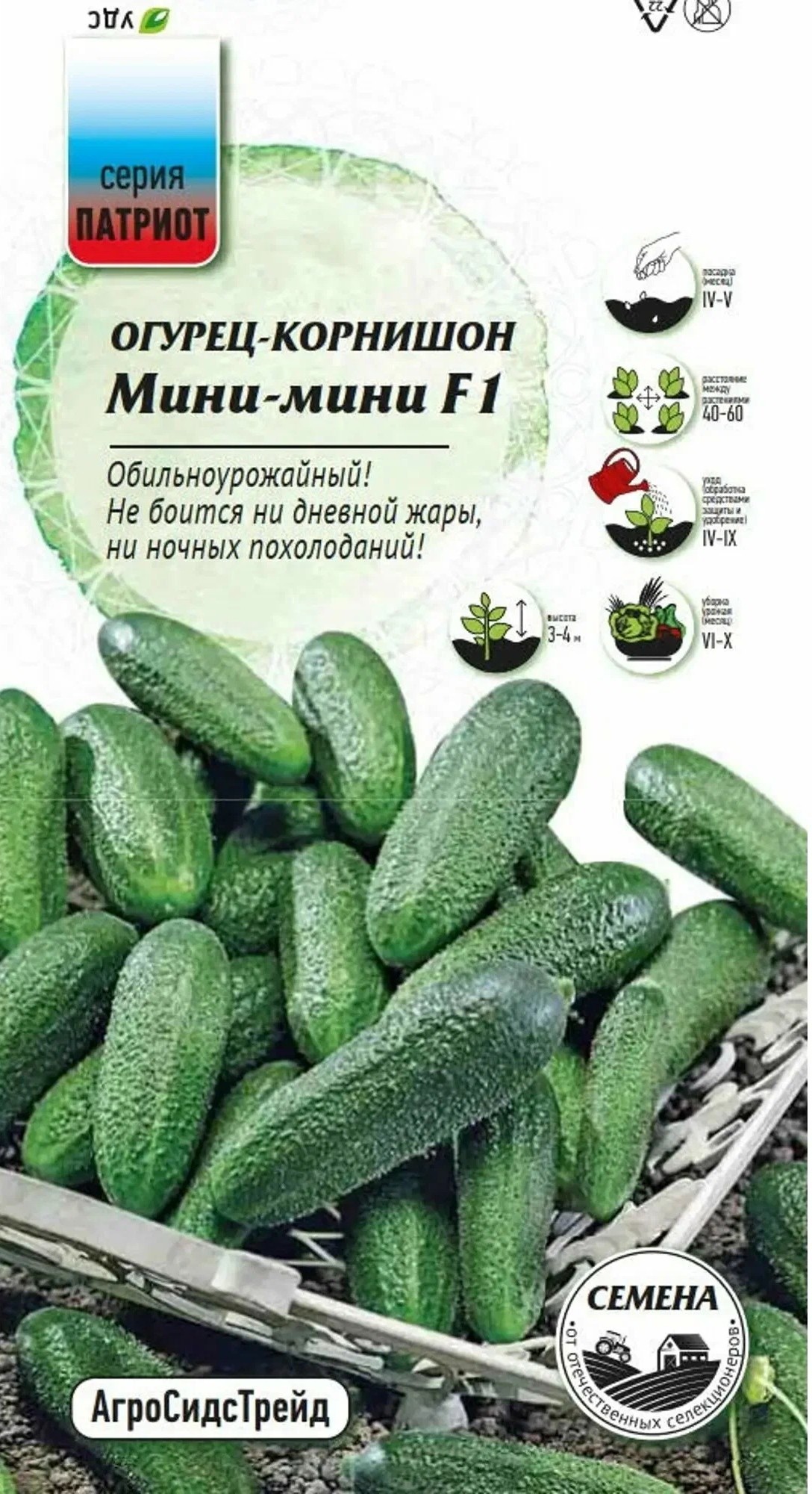 Высокоурожайный партенокарпический гибрид женского типа цветения для выращивания в открытом и закрытом грунте. Огурчики все как на подбор красавцы, цилиндрические, мелкобугорчатые, белошипые, длиной 10-14 см, сладкие, крепкие, хрустящие, без горечи. Гибрид очень неприхотливый, легко переносит как ночные похолодания, так и дневные повышения температуры. Прекрасно подходит для засолки и маринования, не образует пустот.