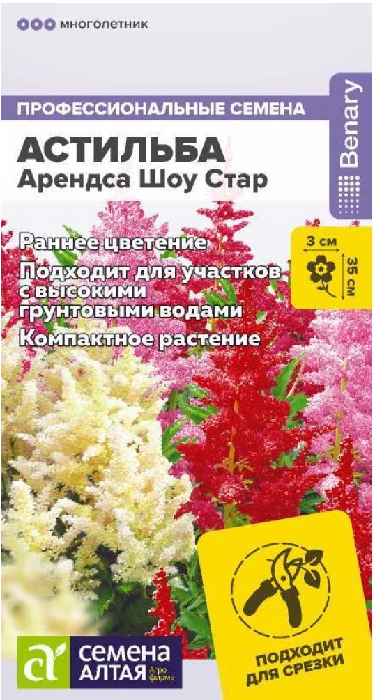 Многолетник, который может расти на одном месте до 10-12 лет. Образует объемные кустики с густыми перьевидными соцветиями разнообразной окраски, от белого до красного цвета. Характеризуется ранним и продолжительным цветением. Отлично подходит для выращивания в открытом грунте и кашпо, для создания ландшафта и срезки. Сохраняет свежесть в срезке до 10 дней, но не теряет своей красоты после увядания и используется как сухоцвет.