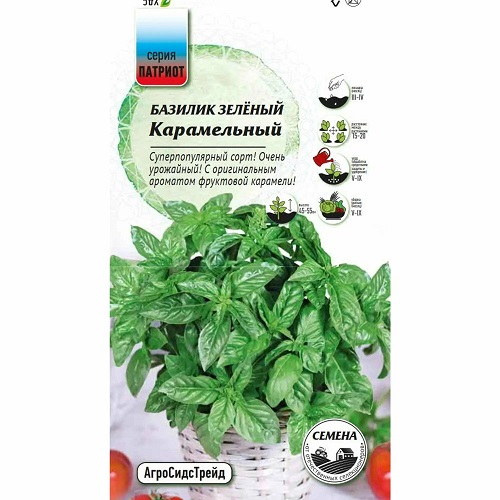 Среднеспелый (35-45 дней от всходов до уборки зелени) сорт. Растение среднерослое, раскидистое. Лист среднего размера, темно-зеленый с серым оттенком, гладкий. Масса растения 250-300 г. Аромат сильный, со специфическим оттенком фруктовой карамели. Выращивается рассадным и безрассадным способом. Базилик предпочитает хорошо структурированные, богатые гумусом почвы. Нуждается в регулярных поливах. Рекомендуется для использования в свежем и сушеном виде в кулинарии в качестве пряной приправы и для ароматизации различных блюд и соусов. Товарная урожайность зелени 2,7-3,3 кг/м2.