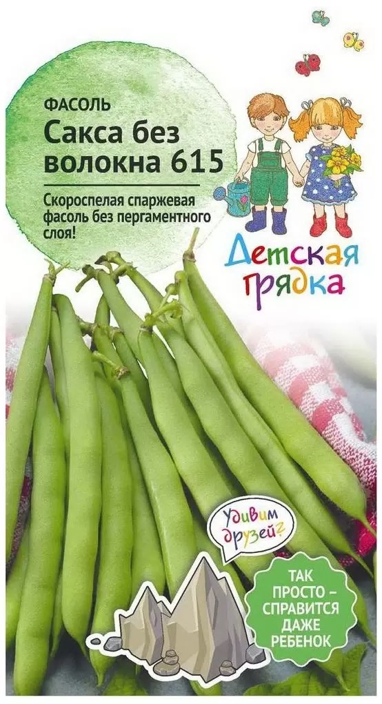 Популярный скороспелый сорт спаржевой фасоли. От появления всходов до первого сбора лопатки - 45-50 дней. Растение кустовое, высотой 35-40 см. Бобы светло-зеленые, слегка изогнутые, длиной 10-13 см, без пергаментного слоя. Стручки нежные, сахарные, отличного вкуса. Урожайность высокая - 1,2-1,3 кг/м.кв. Используется для потребления в свежем виде, консервирования и замораживания
