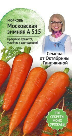 Среднеспелый сорт, от всходов до уборки урожая 90-98 дней. Корнеплод конический, тупоконечный, длиной 15-16 см, массой 100-170 г. Мякоть и сердцевина оранжевого цвета. Сердцевина звездчатая, мякоть сочная, сладкая. Урожайность – до 6,6 кг/м2. Сорт устойчив к цветушности, прекрасно хранится. Рекомендуется для потребления в свежем виде и зимнего хранения.