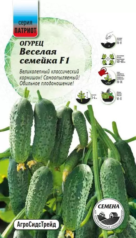 Переносит резкие перепады температур. Партенокарпический гибрид для защищённого и открытого грунта. От всходов до плодоношения 38-42 дня. Более 5-ти завязей в узле. Плоды цилиндрической формы, без горечи, длиной 7-9 см, тёмно-зелёной окраски с короткими полосами, крупнобугорчатые, белошипые. Масса 90-120 г. Устойчив к кладоспориозу, настоящей мучнистой росе, корневым гнилям, вирусу огуречной мозаики. Рекомендуется для маринования.