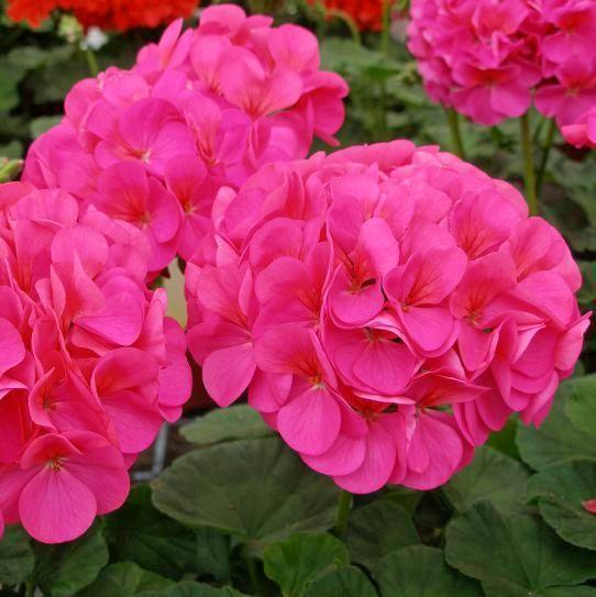 Пеларгония зональная Симона F1 – растение формирует объемный и компактный кустик, высотой 35 см и диаметром 25 см, украшенный декоративными листьями зелёной окраски с коричневыми оттенками по краю. Цветки сочной розовой окраски, иногда с покраснением к центру, собраны в крупные, шаровидные соцветия. Данный сорт высоко устойчив к поражению вредителями и к неблагоприятным погодным условиям.