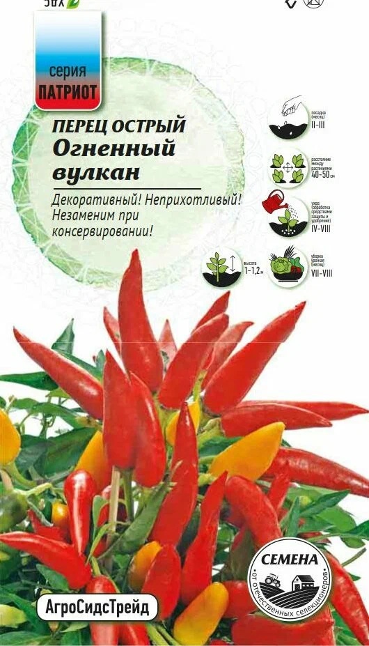 Раннеспелый (период от полных всходов до технической спелости 95 дней) декоративный сорт. Подходит для выращивания в открытом грунте, под пленочными укрытиями, на балконах или круглогодично в комнатных условиях. Растение индетерминантное, высотой 100-120 см. Не требует формирования растения. Плоды удлиненно-конусовидной формы, гладкие, глянцевые, направленные вверх, в технической спелости темно-зеленые, в биологической – красные, массой 20 г. Обладает острым вкусом и сильным перечным ароматом. Рекомендуется для использования в консервировании, для изготовления порошка и специй. При выращивании в качестве горшечной культуры необходимо использовать универсальный питательный грунт. Семена высевают в небольшие ящики на слегка утрамбованный грунт, присыпают 1 см торфа или земли, обильно поливают теплой водой, накрывают пленкой и помещают в теплое место. Объем кашпо 4-6 литров. При появлении всходов пленку снимают, сеянцы пикируют в фазе 2 настоящих листьев в горшки диаметром 15-18 см с хорошим дренажом. В комнатны