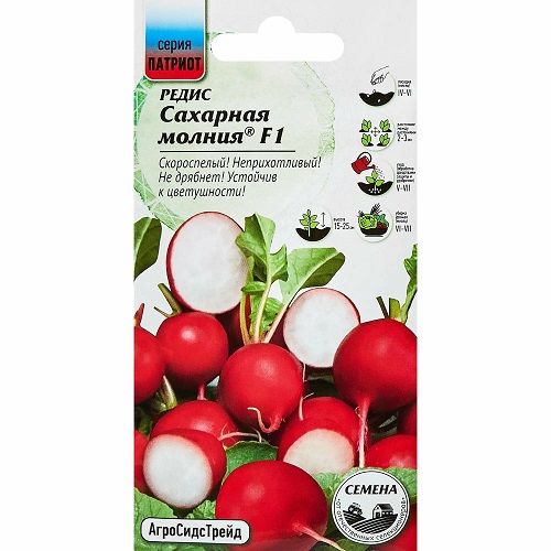 Скороспелый гибрид, предназначен для выращивания в открытом и защищённом грунте. Формирует однородные корнеплоды с отличными вкусовыми качествами. Корнеплод округлый, массой до 40 г, имеет приятный интенсивно-красный цвет. Мякоть корнеплода белая, стекловидная, долго не дрябнет и не грубеет. Гибрид удачно сочетает скороспелость с высокой устойчивостью к цветушности.