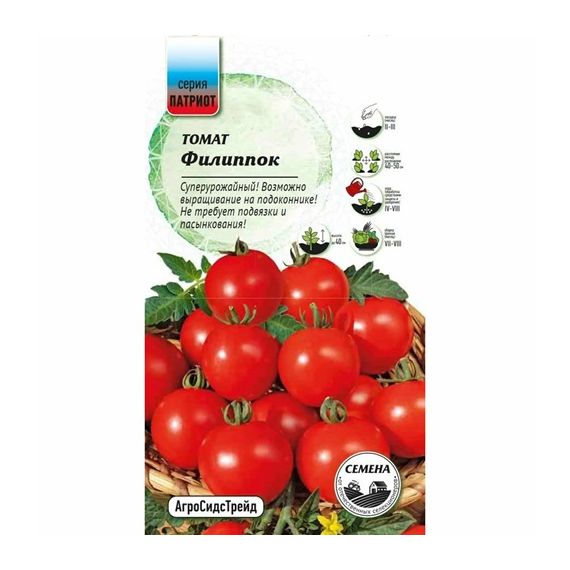 Семена Томат "Филиппок", суперранний, 20 шт. Скороспелый сорт выведен сибирскими селекционерами специально для открытого грунта. Красивые круглые помидоры массой до 100 г созревают всего за 94 дня. Это делает сорт очень удобным для получения обильного урожая в регионах с ранней осенью. Как высаживать: рассаду готовят за 50–60 дней до помещения в грунт. Лучше всего семена прорастают при температуре 23–25 °С. При переносе сеянцев на постоянное место соблюдают схему 1–2 раст./м². Сорт выращивают в 1–2 стебля с обязательной подвязкой. Куст хорошо реагирует на поливы и подкормки комплексными минеральными удобрениями.