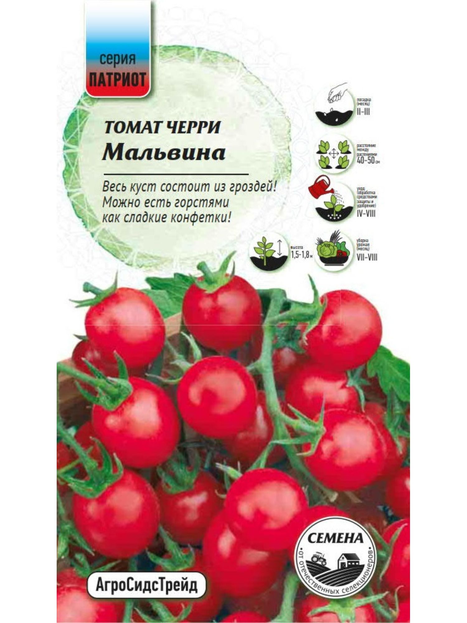 Тип черри, очень сладкие томатики. Сладкие ароматные помидорчики. Салатный и для цельноплодного консервирования. Для выращивания в пленочных теплицах. Раннеспелый сорт. Период от всходов до созревания 95-100 дней. Растение требует подвязки и формирования. Плод округлый, гладкий, плотный. Окраска незрелого плода зеленая, зрелого - малиновая. Число гнезд 2. Масса плода 15-25 г. Вкус отличный. Универсальное использование