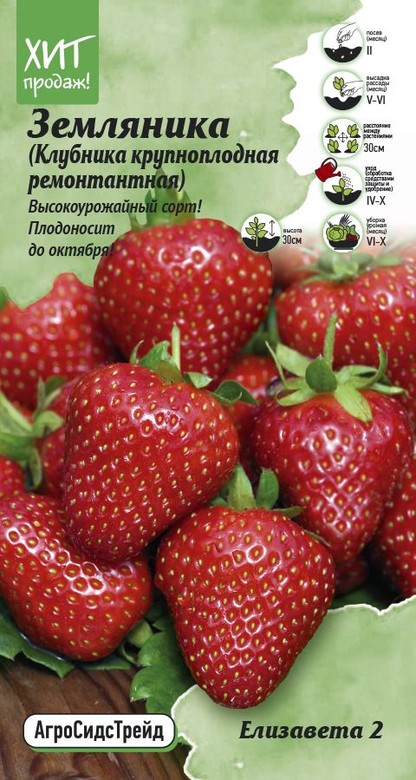 Сорт ремонтантной, крупноплодной земляники десертного назначения. Сорт высокоурожайный, средняя урожайность 350 ц/га. Ягода крупная, сладкая, не водянистая, не мельчает. Форма овальная, с шейкой. Мякоть красная, плотная, сочная, кисло-сладкого вкуса, с типичным ароматом. Дегустационная оценка 4,7 балла. При хорошем уходе плодоносит в три волны: в первой половине июня, первой декаде июля и середине августа. При благоприятных погодных условиях можно собирать ягоды до октября. Куст прямостоячий, полураскидистый. Усы средние, зеленые, малочисленные. Листья средние, зеленые, средней морщинистости, средней ребристости, вогнутые, блестящие, с острыми зубчиками. Цветки обоеполые, средние, белые, нескрученные. Цветоносы расположены ниже листьев. Соцветие раскидистое, многоцветковое. Зимостойкий, устойчив к основным болезням и вредителям земляники.