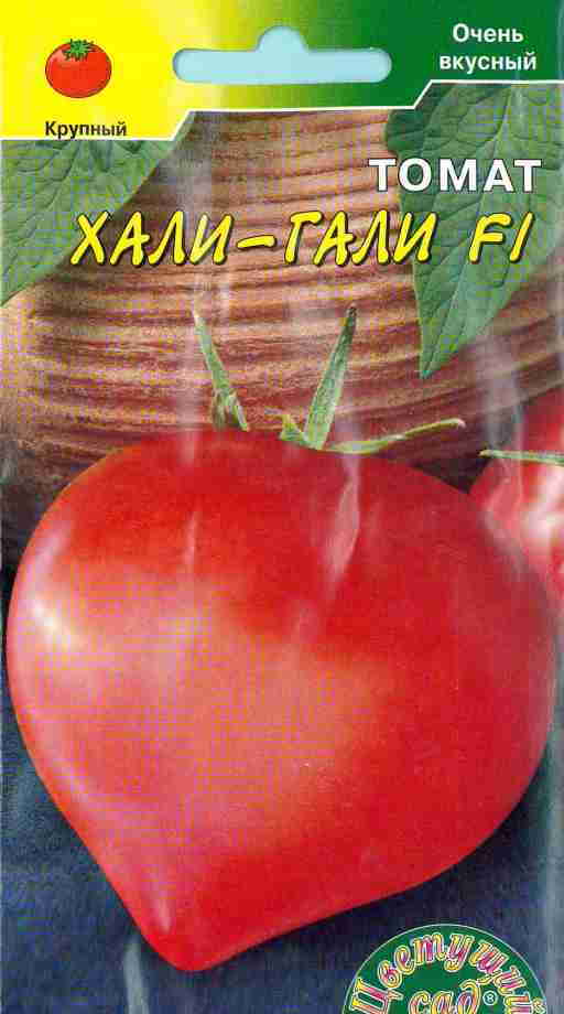 Раннеспелый гибрид Хали-Гали , от всходов до начала плодоношения 102-107 дней. Растения детерминантные, мощные, среднеоблиственные. Первое соцветие закладывается над 5-7 листом. Плоды крупные, прочные, плотные, с равномерной красной окраской, без зелёного пятна у плодоножки, массой 150-250 г. Характерная особенность: на вершине плода маленький "носик". Рекомендован для раннего производства в плёночных теплицах и в открытом грунте. Урожайность Хали-Гали F1 стандартных плодов в открытом грунте 6,5-8,5 кг/м2, в плёночных теплицах - 11-13,5 кг/м2