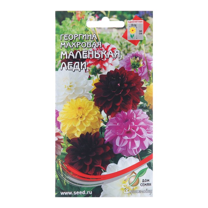 Махровые георгины с кустом до 30 см. Стебель упругий, листья темно-зеленые. Соцветия - яркие, махровые и полумахровые диаметром 8 см. Благодаря пышному и продолжительному цветению георгина отлично подойдет для создания яркого бордюра, смешанной клумбы, а также для посадки в вазоны и балконные ящики. Посев: в марте-апреле на рассаду. Всходы появляются через 10-14 дней при t=18-200С. Пикировать через 4 недели. Расстояние между сеянцами 4 см. Рассаду высаживать в грунт, когда минует угроза заморозков. Расстояние между растениями 30-35 см. Уход: предпочитает теплое солнечное место и плодородные рыхлые почвы, хорошо дренированные. Обильный полив. Цветение: обильное с конца июля до заморозков.