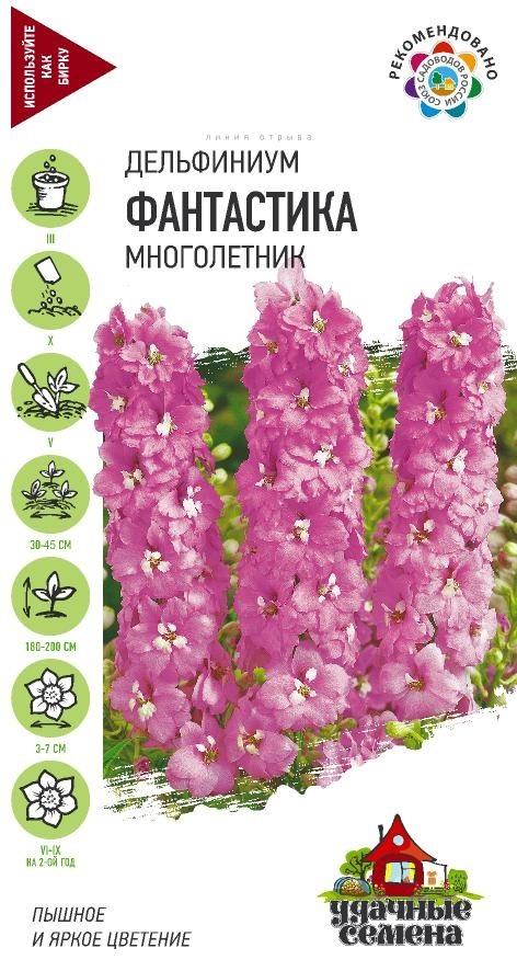 Многолетнее растение семейства Лютиковые, высотой до 2 м с плотными кистевидными соцветиями нежно-розовых цветков. Цветет в июне-июле, вторичное цветение – в августе-сентябре, отцветшие соцветия обрезают для полноценного второго цветения. Хорошо растет на освещенных участках с легким затенением в полуденные часы. Предпочитает плодородные суглинистые и супесчаные, умеренно влажные почвы. Выращивают рассадным способом или прямым посевом в открытый грунт. Используются в групповых и одиночных посадках, для получения срезки. Все части дельфиниума ядовиты.