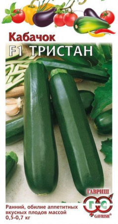 Раннеспелый (32-38 дней от всходов до технической спелости) продуктивный (дает до 22 плодов с куста) гибрид кабачка цуккини. Растение компактное, среднеплетистое. Плоды цилиндрической формы, гладкие, темно-зеленые с едва заметным рисунком, массой 0,5-0,7 кг, длиной до 30 см. Мякоть очень вкусная, нежная, белая. Гибрид вынослив к переувлажнению и пониженным температурам. Урожайность 7,0-7,5кг/м?. Плоды употребляют в вареном, тушеном и жареном виде, а также свежими (молодые завязи) в салатах. Из них получается аппетитное консервированное ассорти. Зрелые крупные плоды хранятся до 4 месяцев