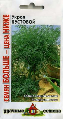 Кустовой укроп в отличие от обыкновенного имеет более густой и мощный кустик, у основания его стебля образуется 5-6 сближенных междоузлий (у обычного - 1-2), в пазухах листьев закладываются почки, из которых потом вырастают боковые побеги, которые и придают кустистую форму укропу. Кустовой укроп имеет очень крупную розетку листьев диаметром 40-50 см. Характерно, что у кустового укропа и листья, и побеги долго остаются сочными, зелеными и ароматными. Высевать кустовой укроп необходимо более просторно - через 25-30 см друг от друга, иначе куст не образуется. Урожайность зелени в открытом грунте - до 3 кг/м2, в пленочной теплице - до 5 кг/м2.