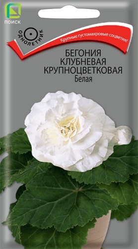 Крупные густомахровые соцветия! Растение высотой до 30-35 см, мощные, с толстыми побегами. Размер цветка 8-9 см. Цветение обильное. Цветы крупные камелиевидные, густомахровые, белые. Выращивание в полутени, но при обильном регулярном поливе можно размещать и на солнечном месте. Превосходно подходит для выращивания в горшках, контейнерах и в открытом грунте. 5шт. в цветном пакетике.