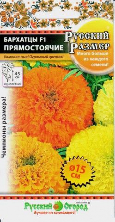 Семена РУССКИЙ ОГОРОД Бархатца прямостоячие Русский размер смесь 772145
